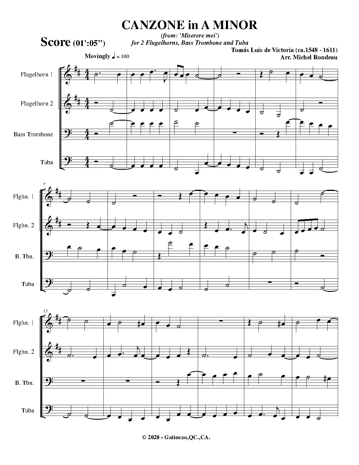 For 2 Flugelhorns, Bass Trombone and Tuba (Rondeau)