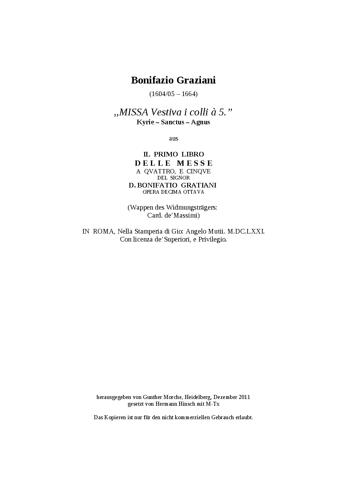 | Composer | Graziani, Bonifazio |