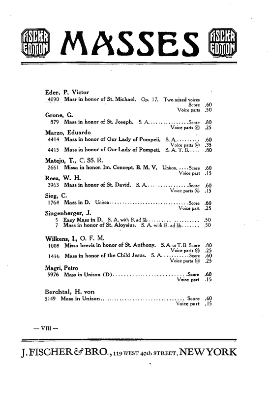 | Genre Categories | Masses; Religious works; For childrens chorus, male chorus, organ; |