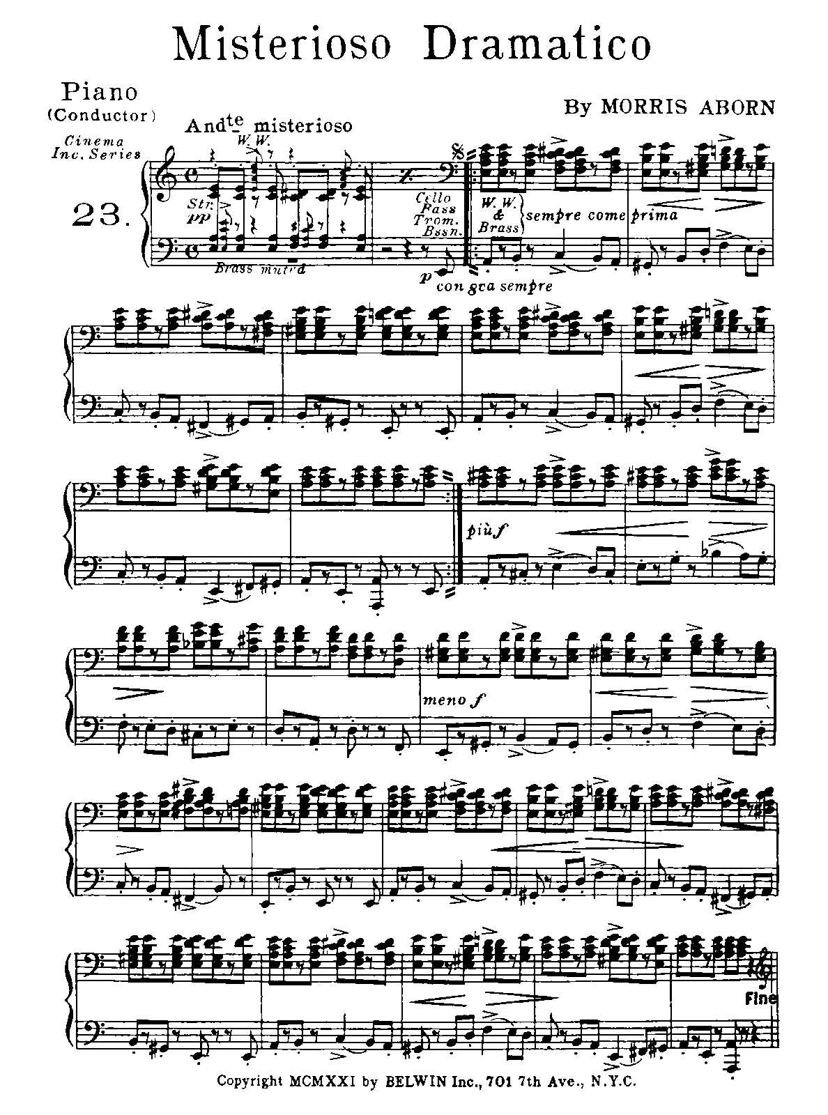 | Extra Information | Intended for use as accompaniment for silent movies. Published under the pseudonym Morris Aborn. |