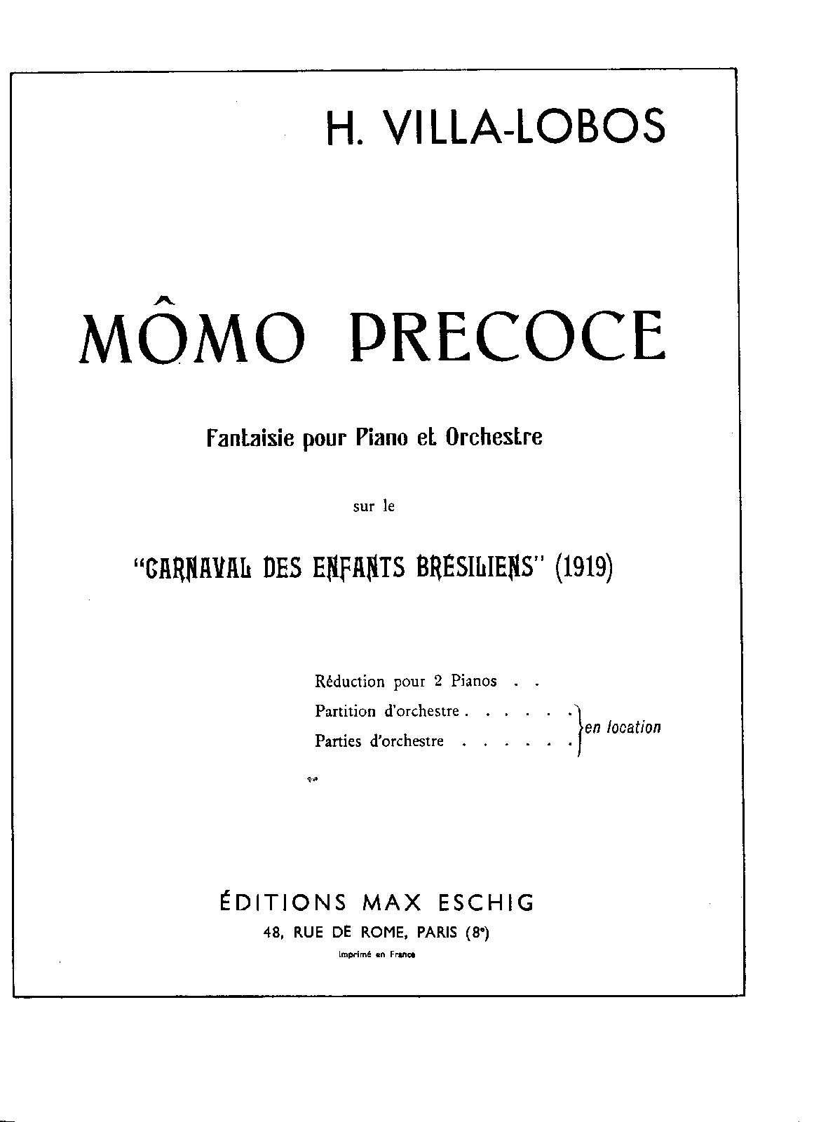 | Alternative. Title | Mômo precoce : fantaisie pour piano et orchestre sur le "Carnaval des enfants brésiliens" : (1919) ; Fantasia (W259 subtitle) |