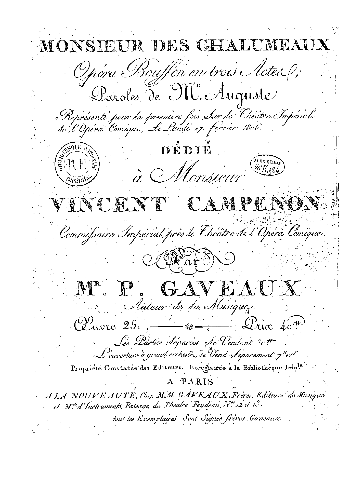 à Monsieur Vincent Campenon, commissaire impériale près le Théâtre de l'Opéra-Comique