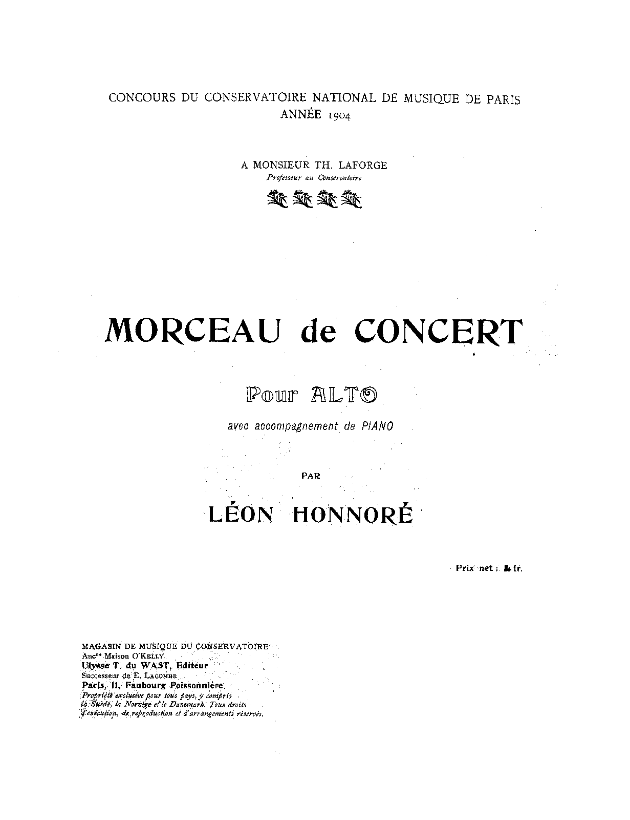 This work was used as an examination piece (Morceaux de concours) by the Conservatoire de Paris. The Conservatoire used this work in the following year(s): 1904, 1911, 1922.