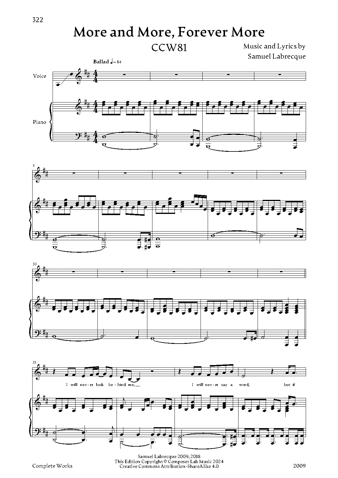 | Genre Categories | Songs; For voice, piano; For voices with keyboard; |