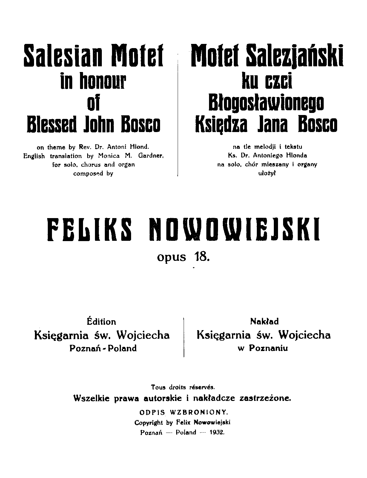 | Extra Information | "On theme by Rev. Dr. Antoni Hlond" |