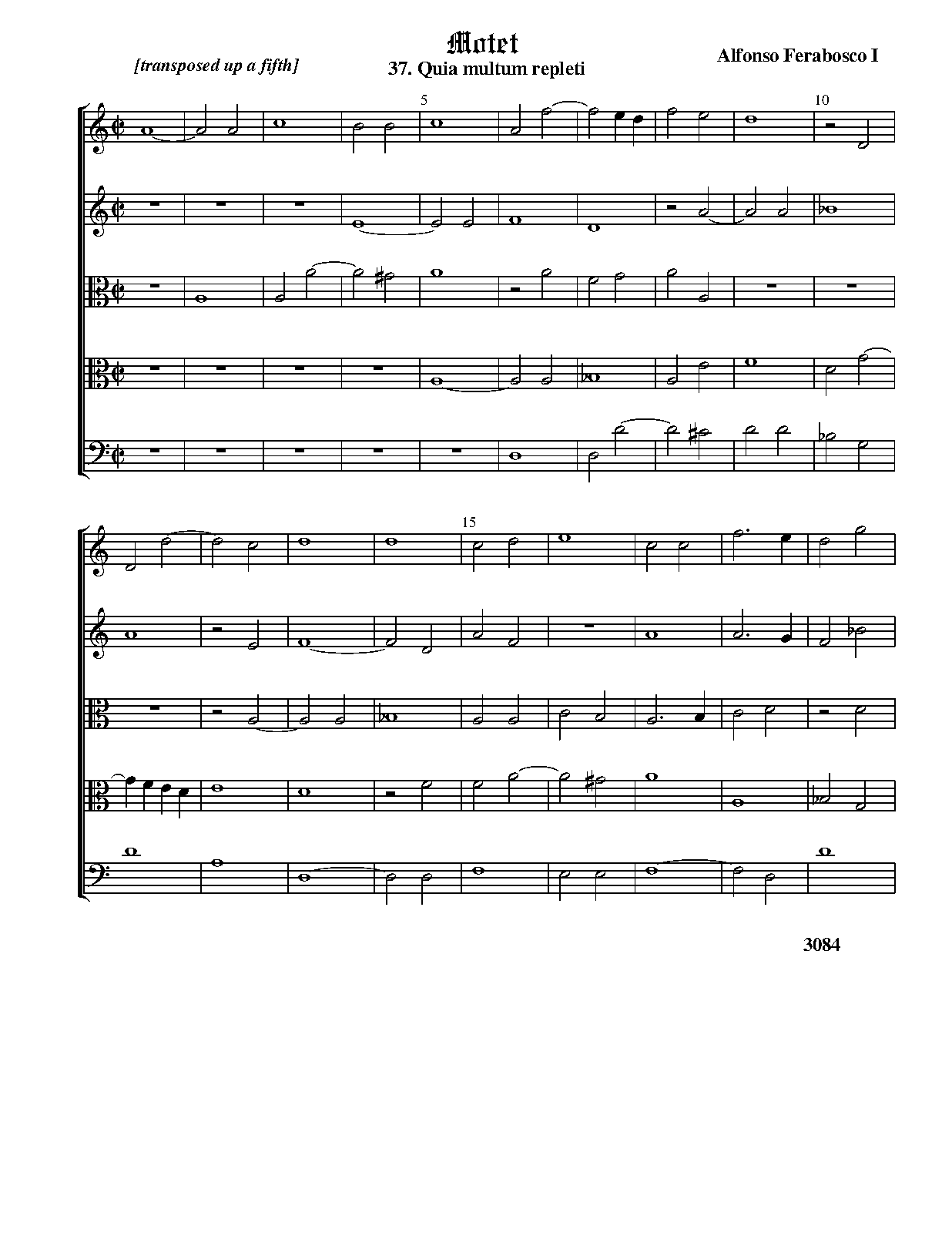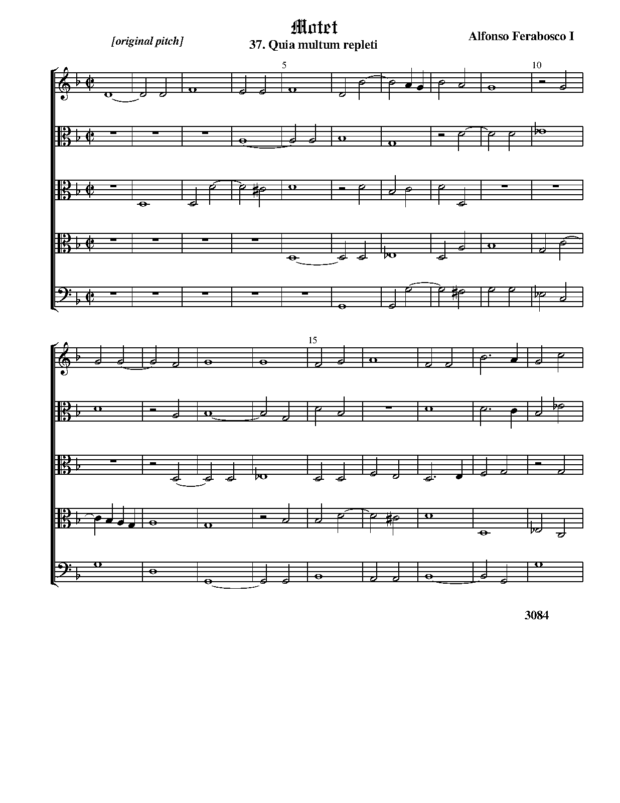 ⇒ 9 more: 37. Quia multum repleti - original key / Complete score (Tr T T B B) • Engraving files (Personal composer) • Treble viol • Tenor viol 1, alto clef • Tenor viol 1, octave treble clef • Tenor viol 2, alto clef • Tenor viol 2, octave treble clef • Bass viol 1 • Bass viol 2