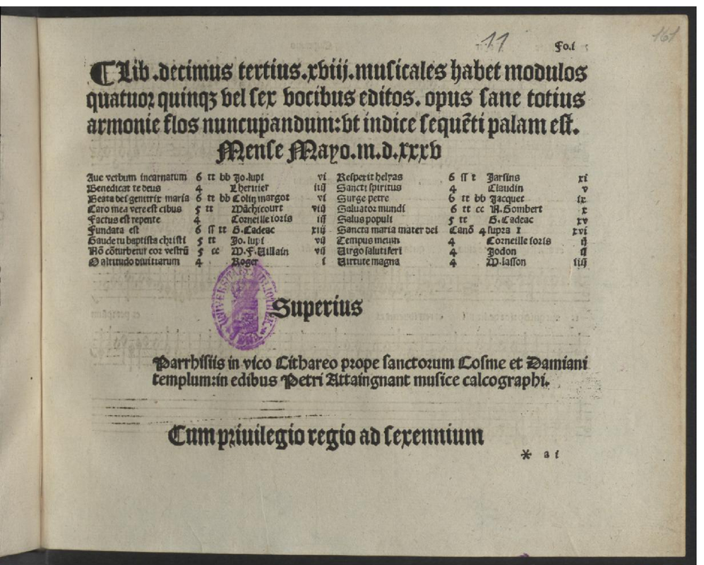 Publisher. Info. Paris: Pierre Attaingnant, 1535.