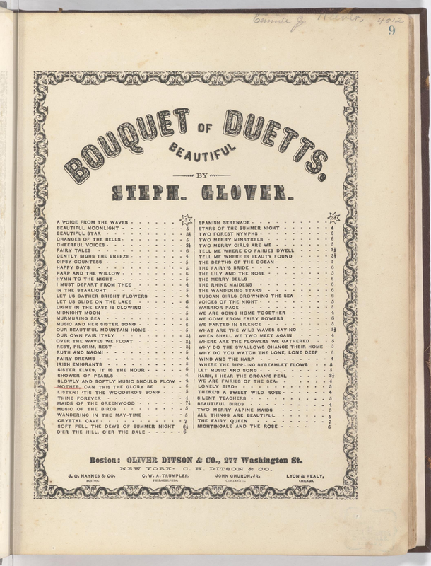 | Genre Categories | Duets; For 2 voices, piano; For voices with keyboard; |
