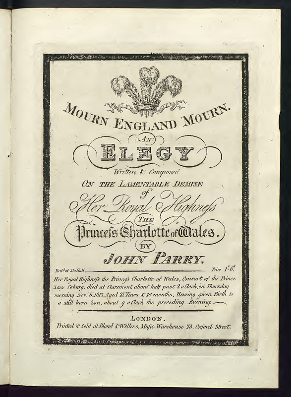 | Alternative. Title | Mourn England Mourn, an Elegy written & composed on the lamentable demise of Her Royal Highness the Princess Charlotte of Wales |