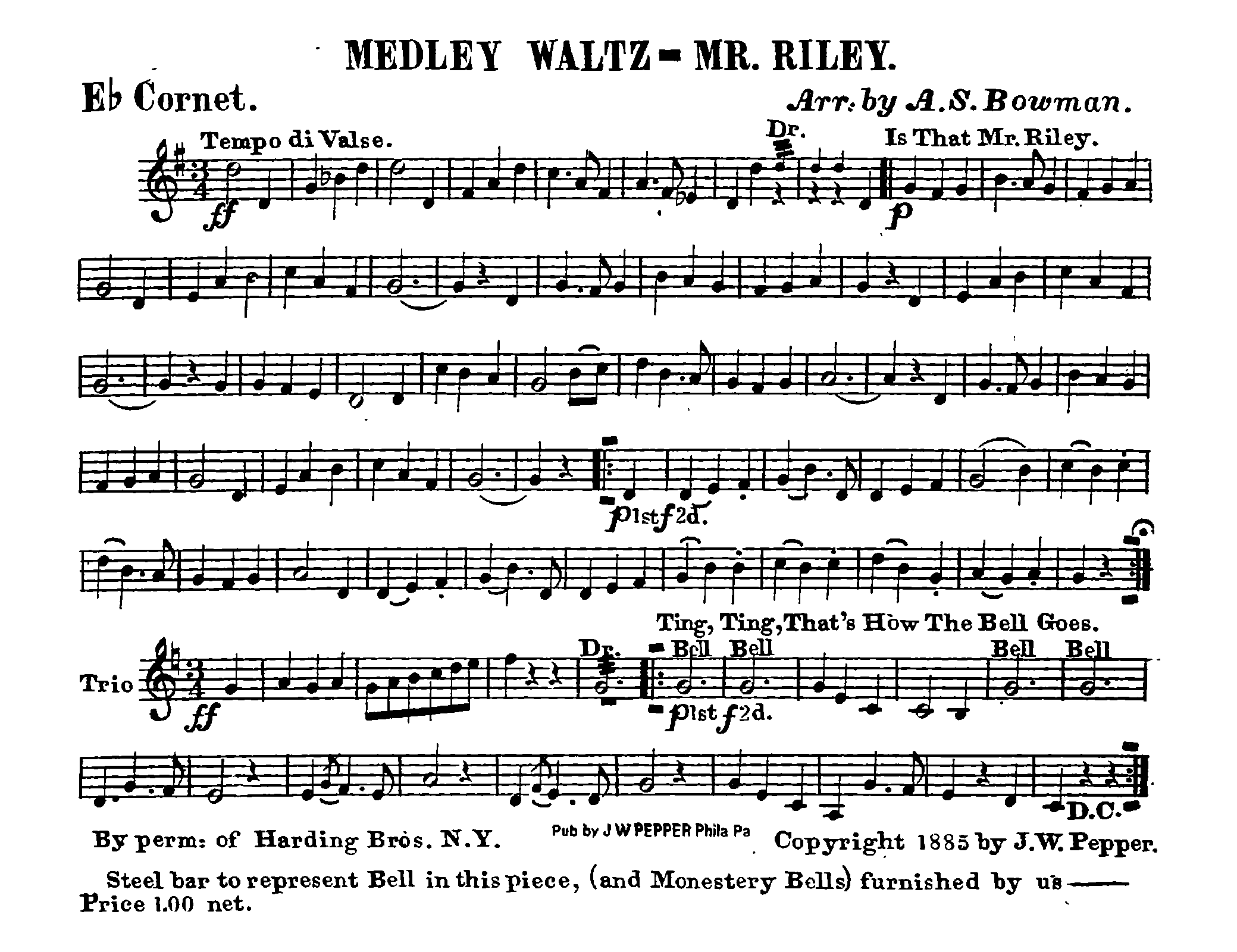 | Extra Information | Based upon the songs Is that Mr. Riley and Ting, Ting, That's how the Bell Goes. |