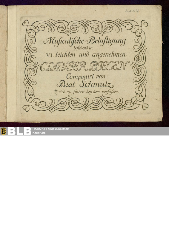 | Alternative. Title | Musicalische Belustigung bestehend in VI. leichten und angenehmen Clavier Piecen |