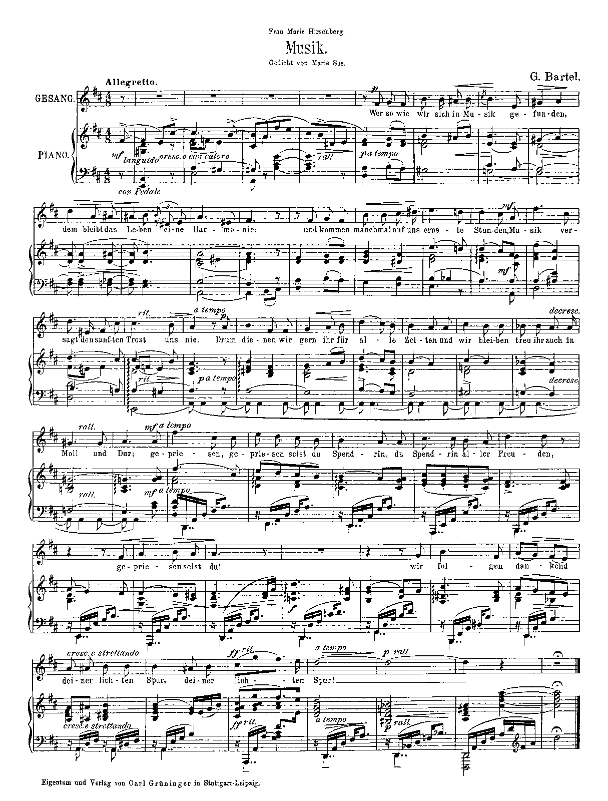 | Text Incipit | Wer so wie sich in Musik gefunden, dem bleibt das Leben eine Harmonie |