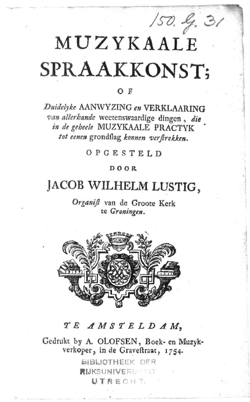 | Alternative. Title | Muzykaale Spraakkonst of Duidelyke Aanwyzing en Verklaaring van allerhande weetenswaardige dingen, die in de geheele Muzykaale Practyk tot eenen grondslag konnen verstrekken |