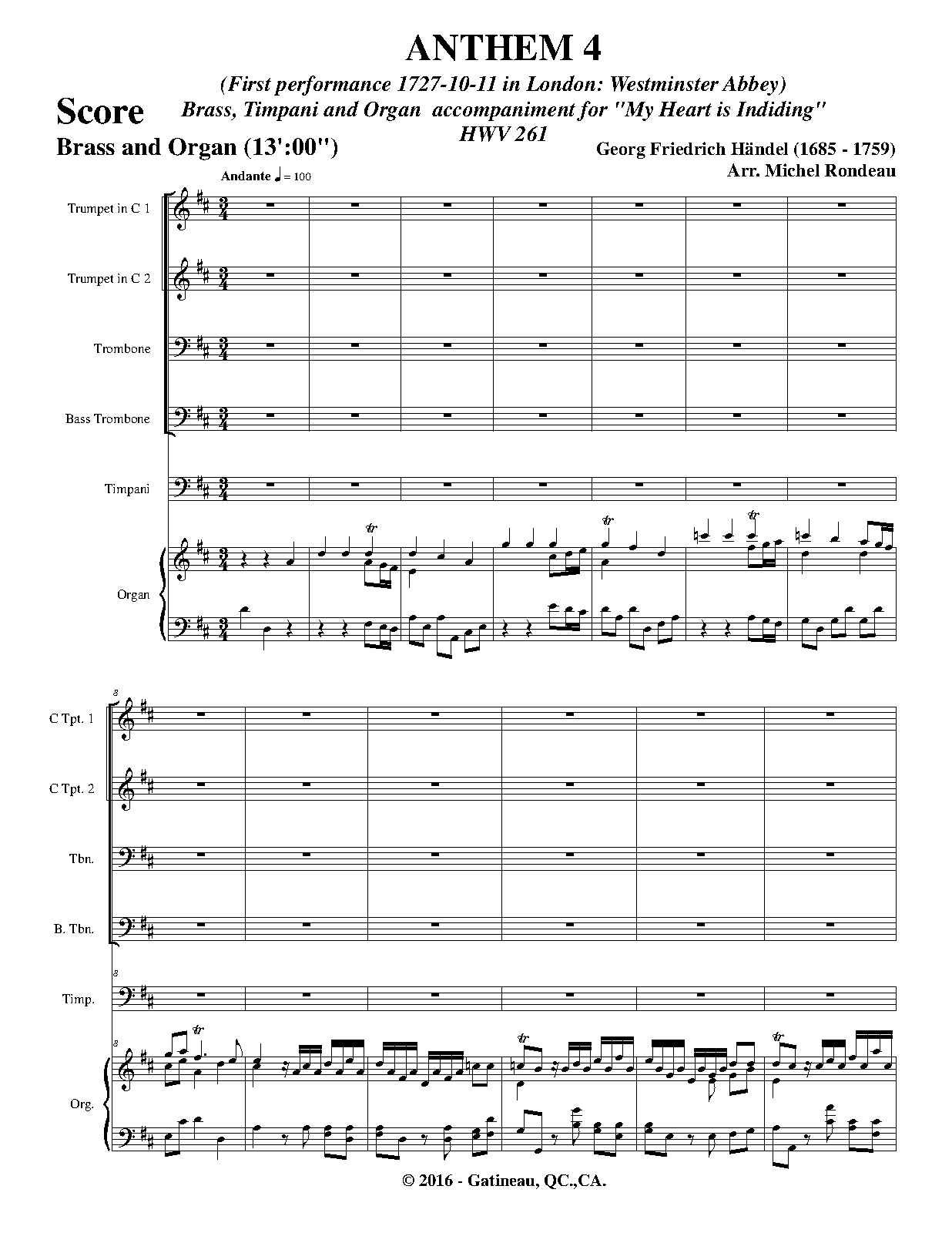 For 2 Trumpets, 2 Trombones, Timpani and Organ (Rondeau)
