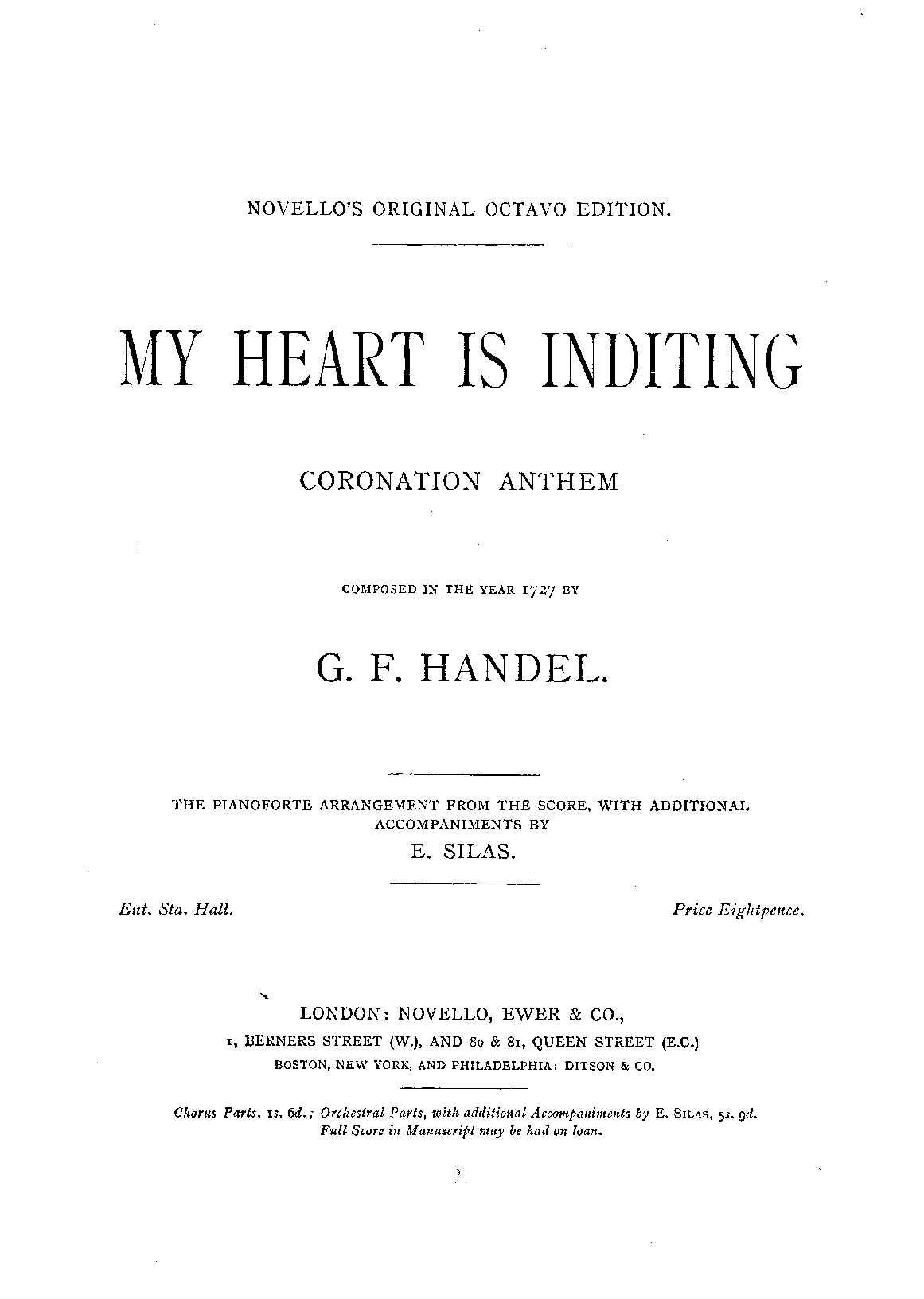 Publisher. Info. London: Novello, Ewer and Co., n.d.