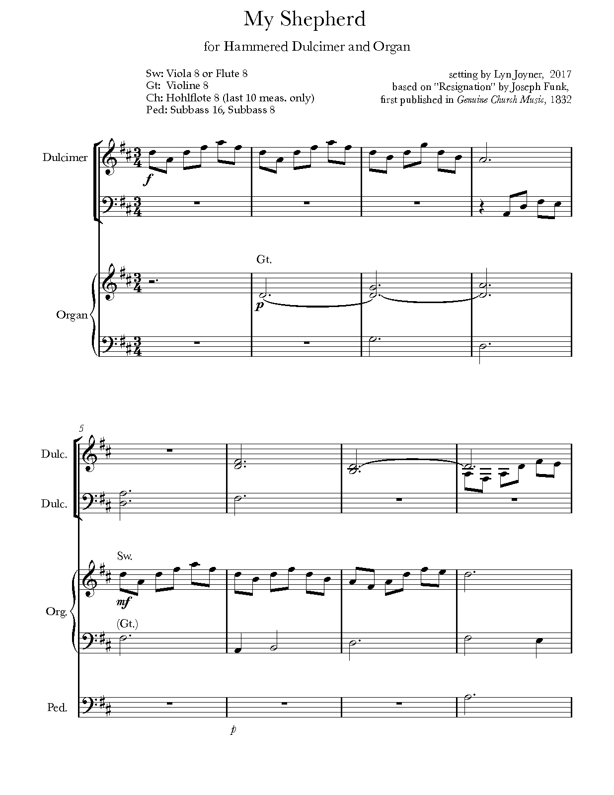 | Work Title | My Shepherd, for Hammered Dulcimer and Organ |