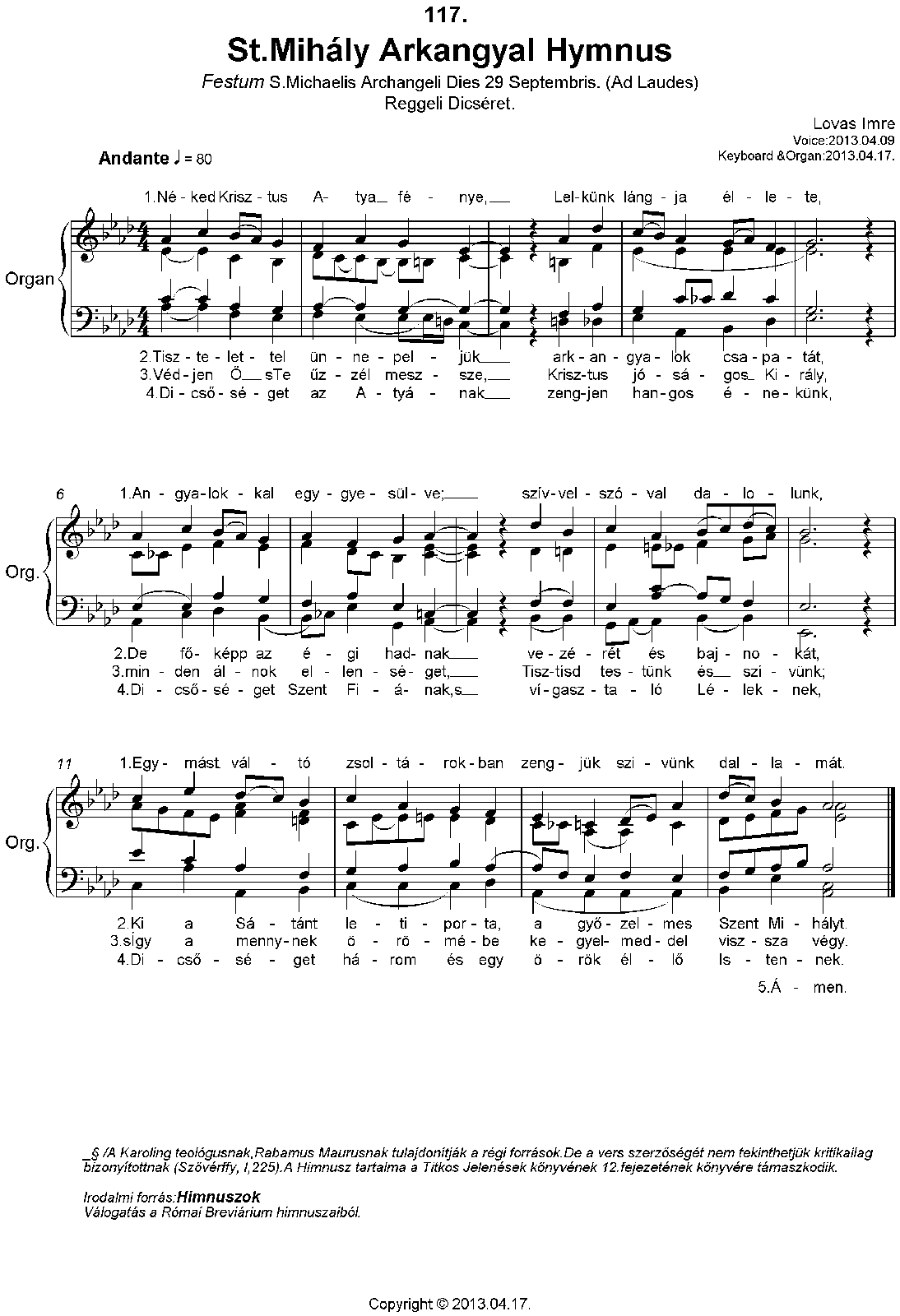 | Alternative. Title | St Michael himnusz ; Sacred Hymnus |