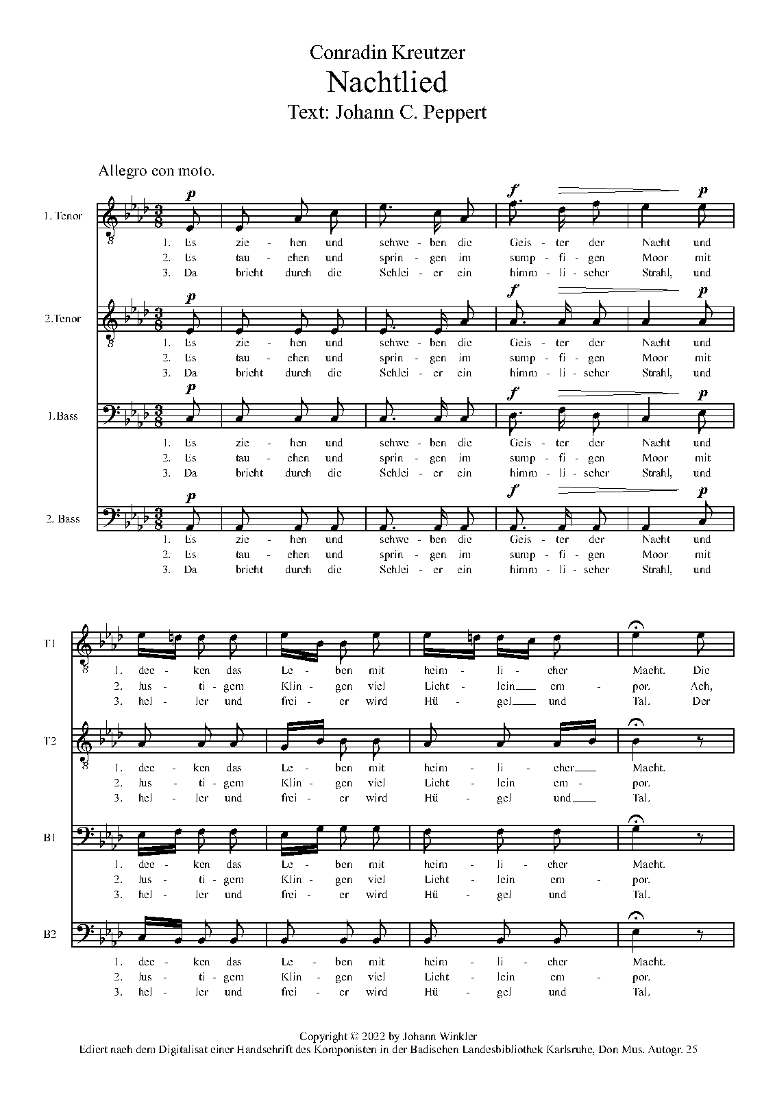 | Text Incipit | Es ziehen und schweben die Geister der Nacht |