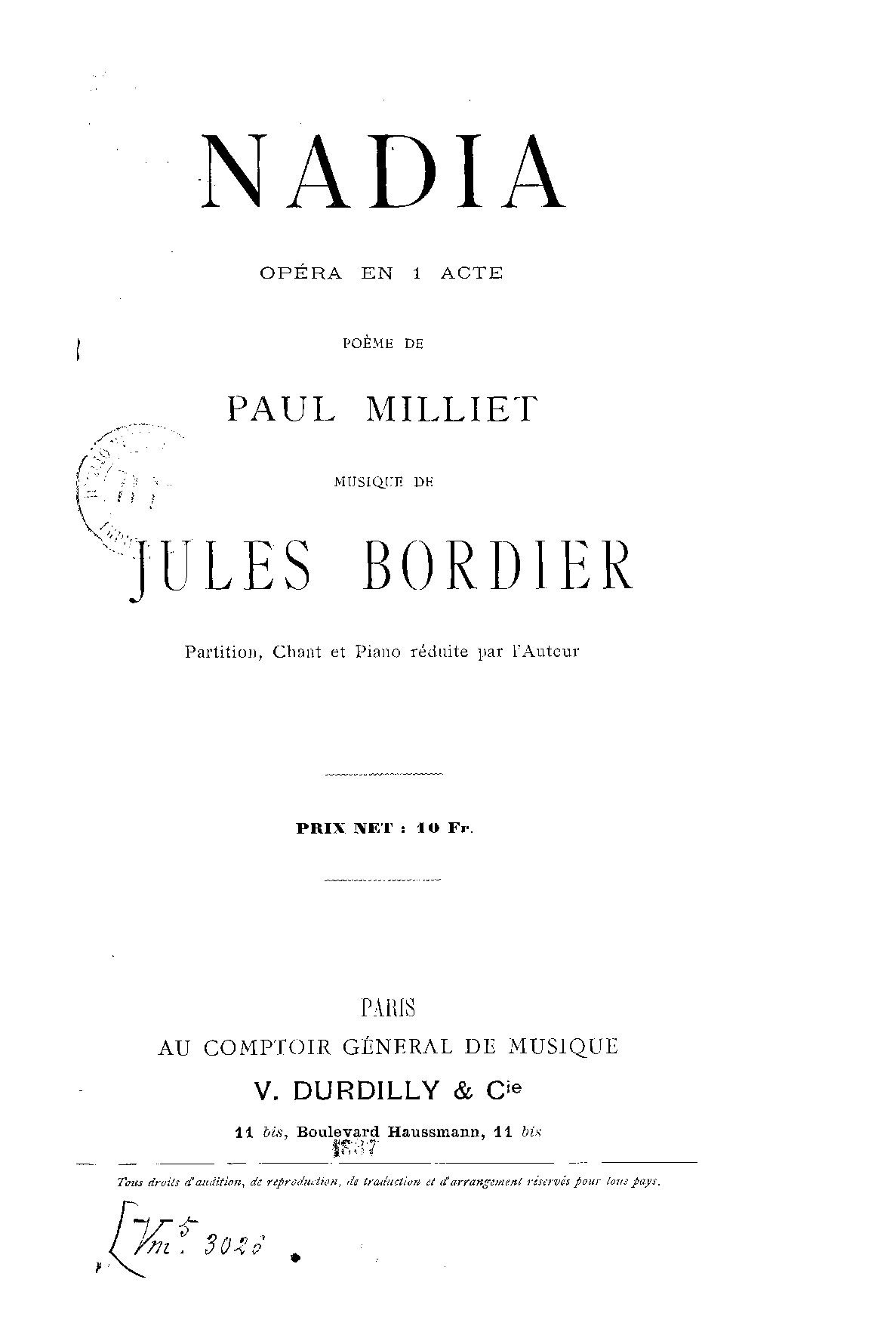 | First Performance. | 1887, Paris: Chateau d'Eau |