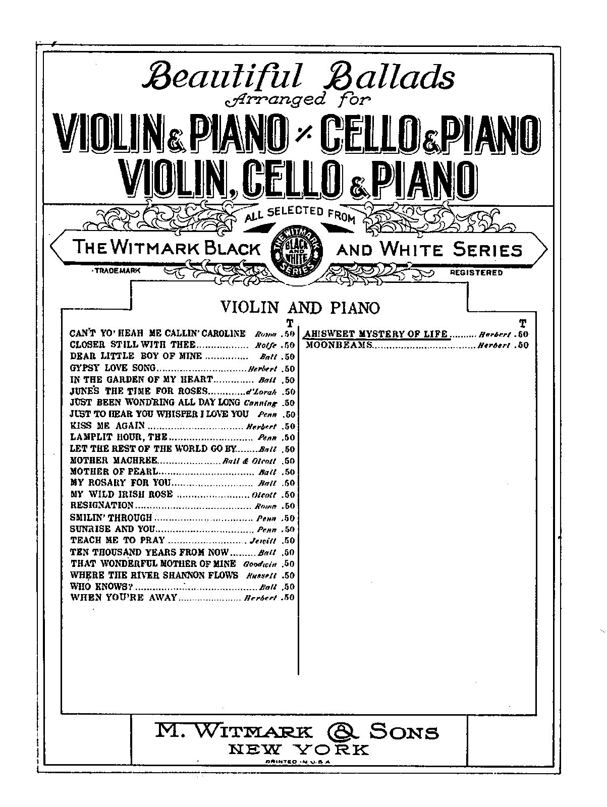 Publisher. Info. New York: M. Witmark & Sons, 1910.