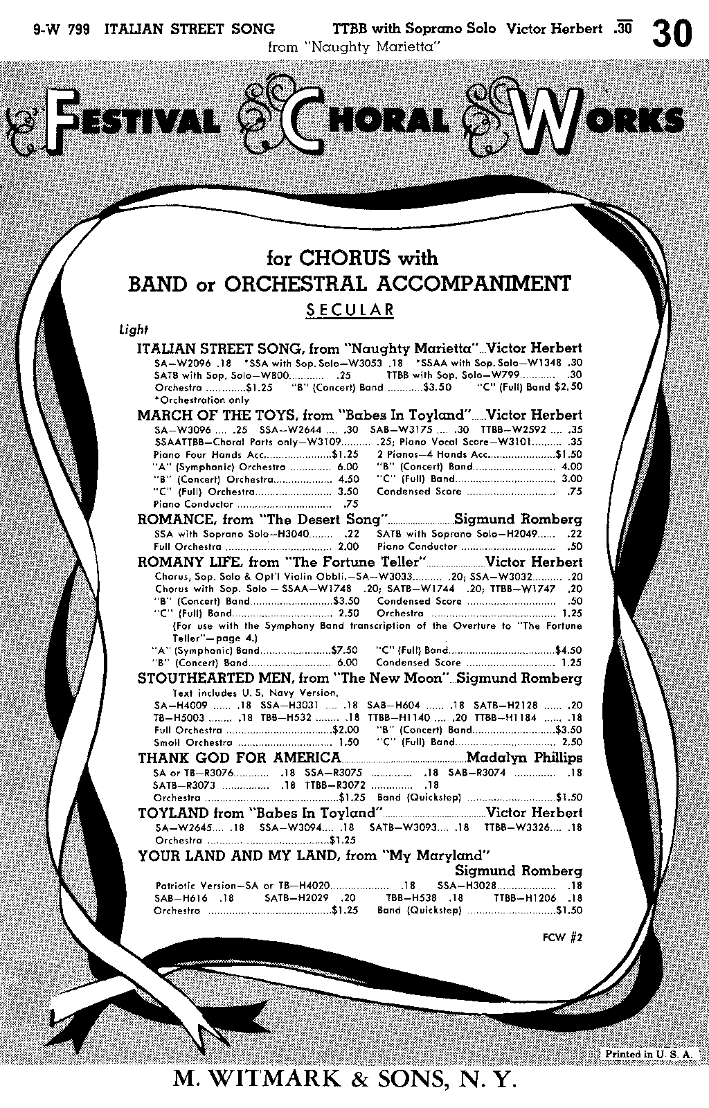 Publisher. Info. The Witmark Theatre & Concert Collection for Orchestra, No.306