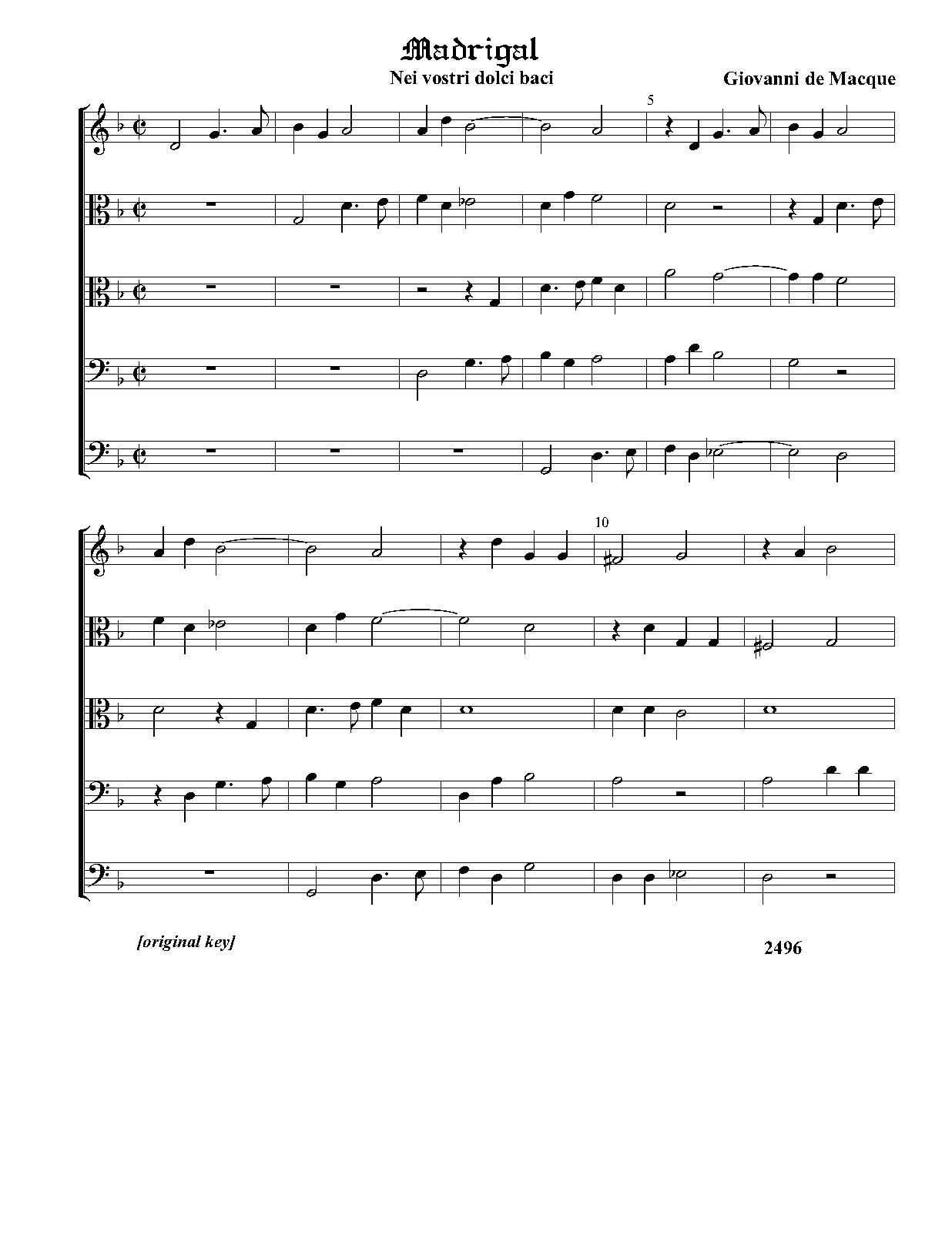 | Genre Categories | Madrigals; For 5 voices; For unaccompanied voices; Scores featuring the voice; Italian language; For 5 viols (arr); Scores featuring the viol (arr); For 5 players (arr) |