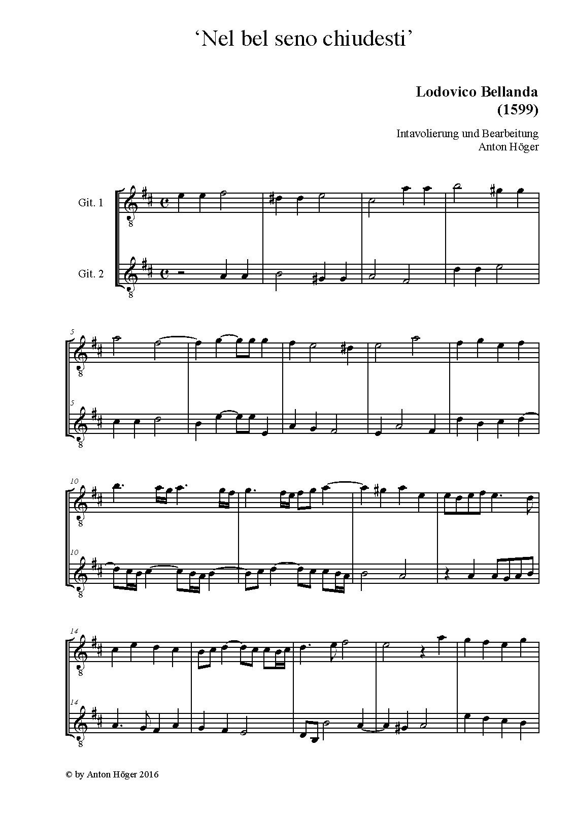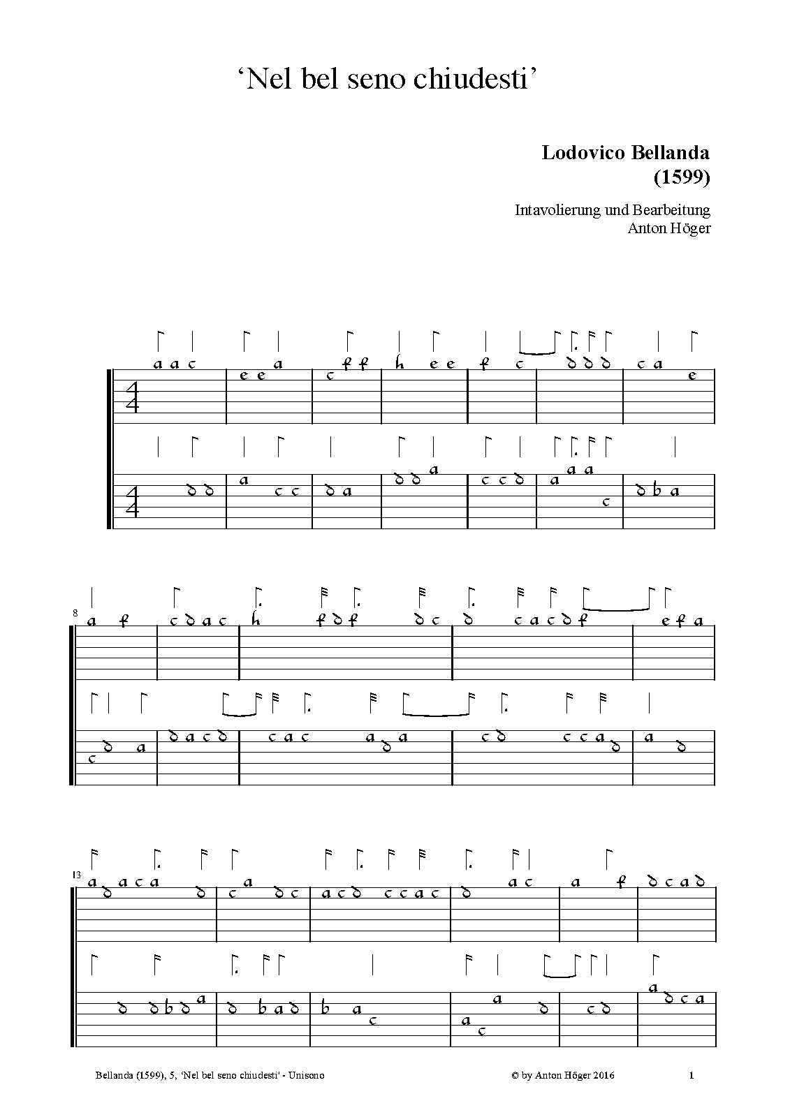 Intabulation in french Lute-tablature for 2 lutes (Unisono). If performed I would look forward about a small reference to my efforts.