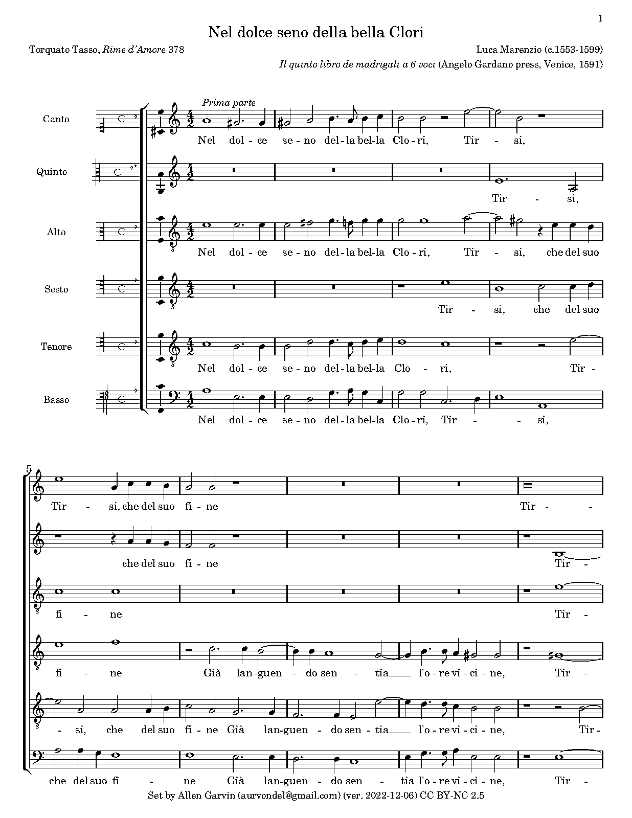 | First Publication | 1591 in Il quinto libro de madrigali a 6 voci (Venice: Angelo Gardano press) |