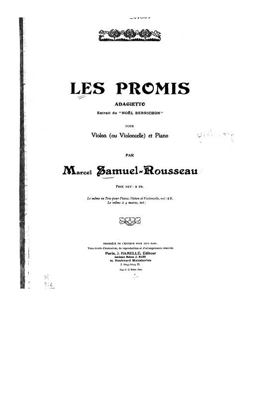 Publisher. Info. Paris: J. Hamelle, n.d.(ca.1910). Plate J. 6043 H.