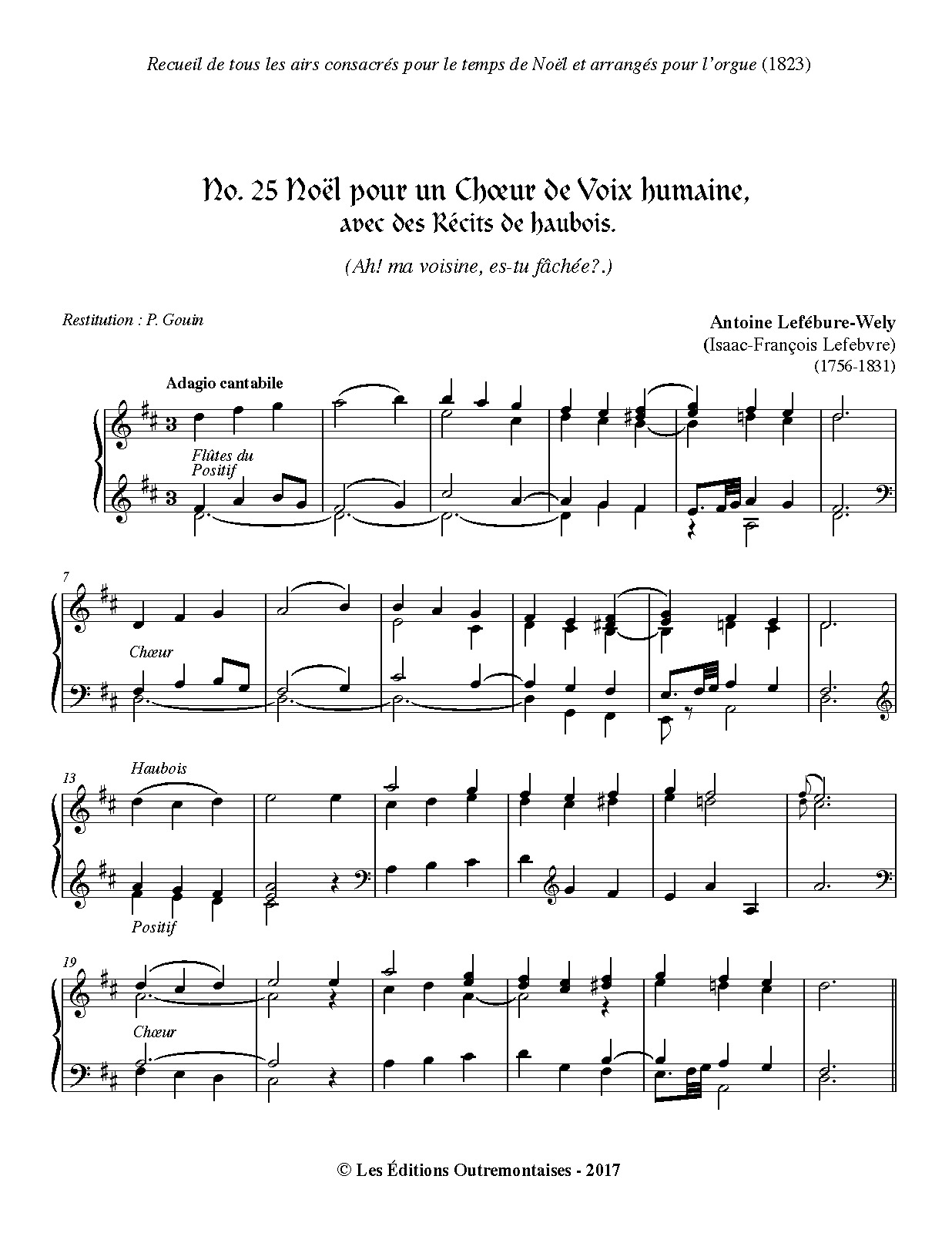 Noël pour un Chœur de Voix humaine, avec des Récits de Haubois. (Ah! ma voisine, es-tu fâchée?)