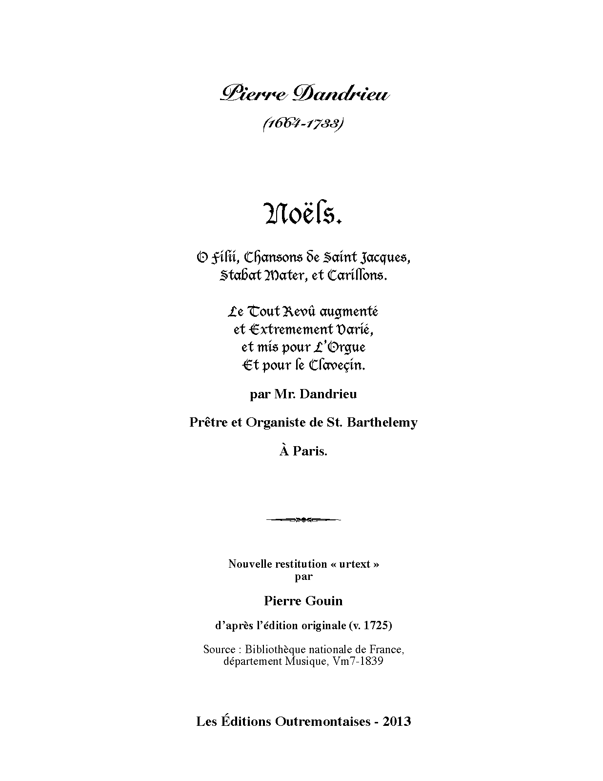 - NOELS. O Filii, Chansons de Saint Jacques, Stabat Mater, et Carillons. Le Tout Revû, augmenté et Extremement Varié, et mis pour L’Orgue Et pour le Claveçin Par Mr. Dandrieu (original)</span>