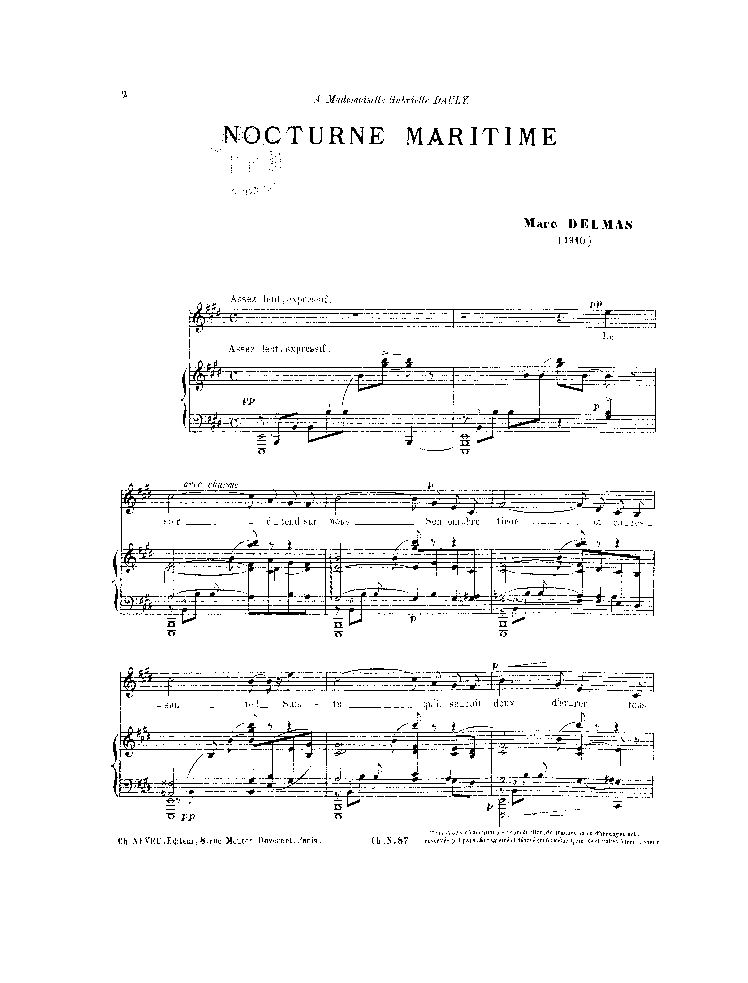 | Dedication | à Mademoiselle Gabrielle Dauly |