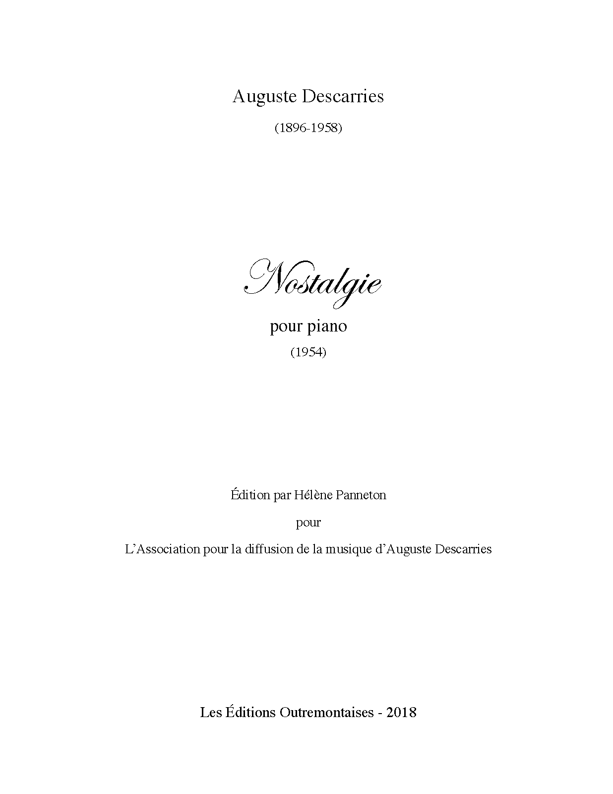 | Extra Information | Publié sous l'égide de l'Association pour la diffusion de la musique d’Auguste Descarries (ADMAD). |