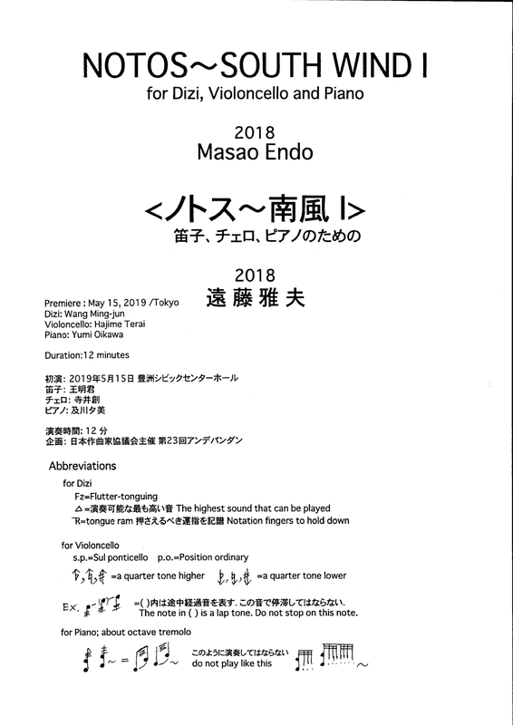 | Work Title | Notos: South Wind 1 for Dizi, Violoncello and Piano |