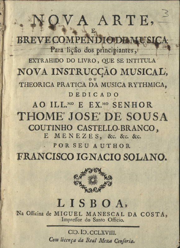 | Alternative. Title | Nova arte, e breve compendio de musica para lição dos principiantes |