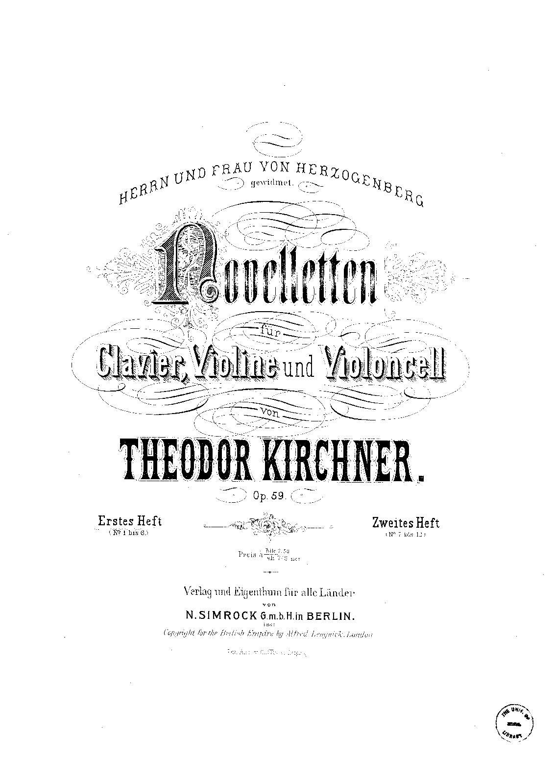 | Alternative. Title | Novelletten for Piano Trio (Violin, Cello and Piano), Op.59 |