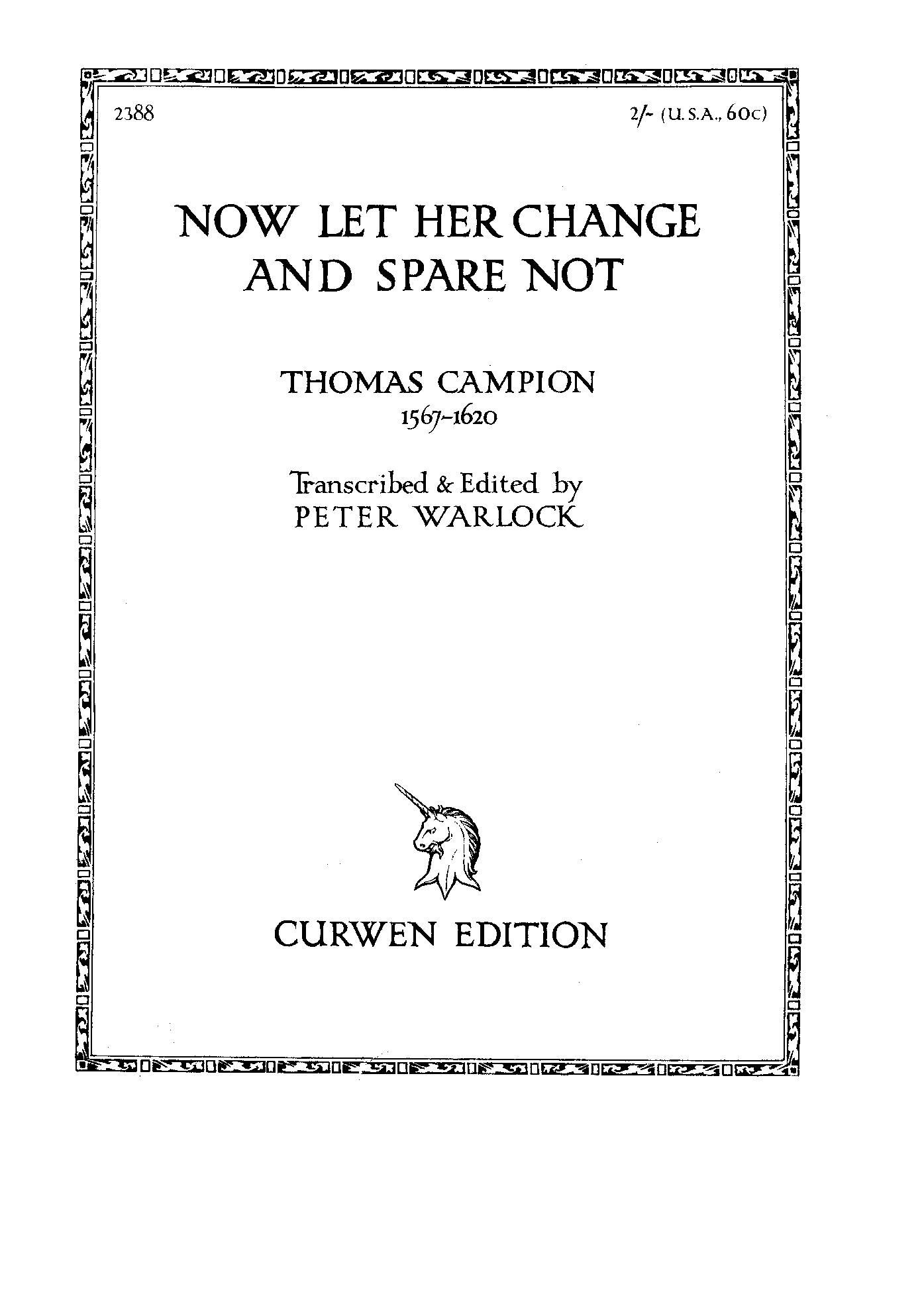 | Work Title | Now let her change and spare not |