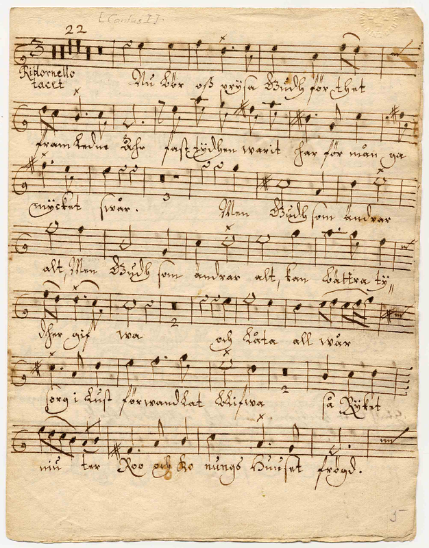 | Instrumentation | 2 sopranos, 2 dessus, continuo (5 bass parts; bassus pro fagotto, fagotto & 3 unlabelled) |