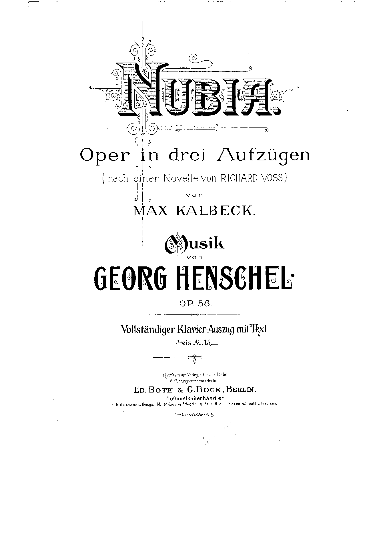 Max Kalbeck (1850–1921) after a novel by Richard Voss