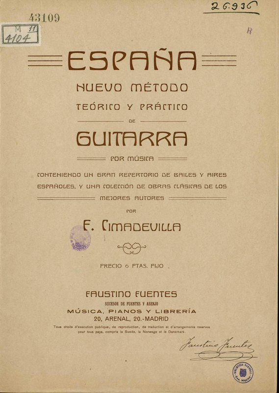 | Alternative. Title | Nuevo método teórico y práctico de guitarra por música : conteniendo un gran repertorio de bailes y aires españoles, y una colección de obras clásicas de los mejores autores |