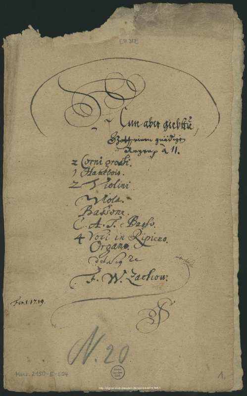 | Instrumentation | Voices: soprano, alto, tenor, bass; mixed chorus Orchestra: 2 oboes, bassoon, 2 horns, strings, continuo |