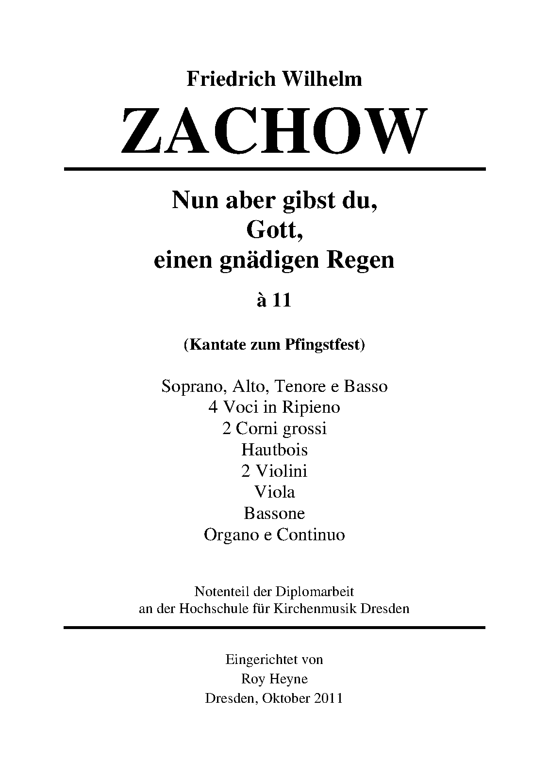 | Work Title | Nun aber gibst du Gott einen gnädigen Regen |