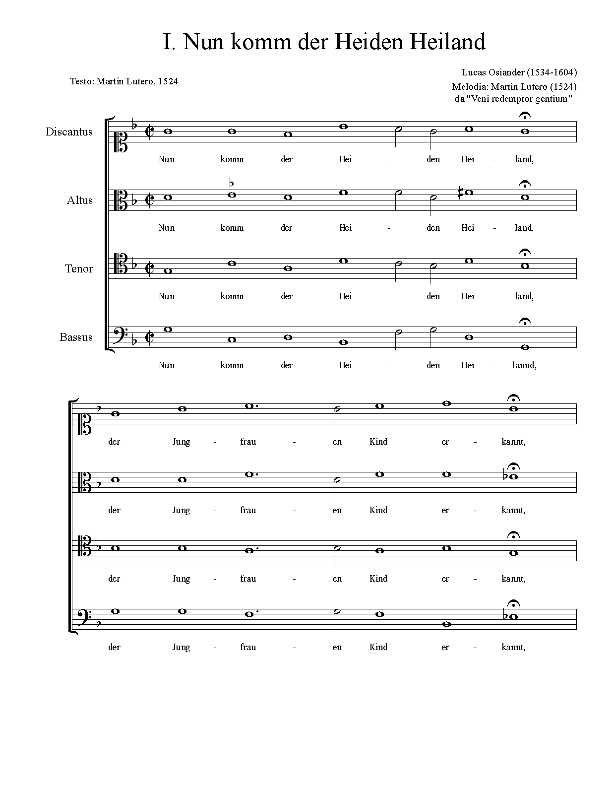 | Related Works | Nu kom, der heiden Heiland by Johann Walter Die Choralmelodien (Orgelbüchlein: No.1) Nun komm, der Heiden Heiland, BWV 62, by Johann Sebastian Bach (No.6) |