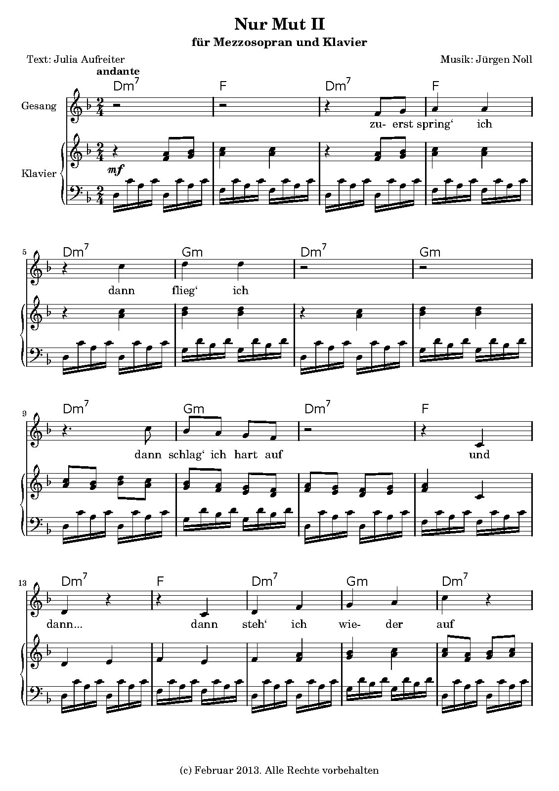 This is the second adaptation of the poem "Nur Mut" ("Take Courage") by Julia Aufreiter. The first adaptation is the basis for "per aspera ad astra" by the same composer.