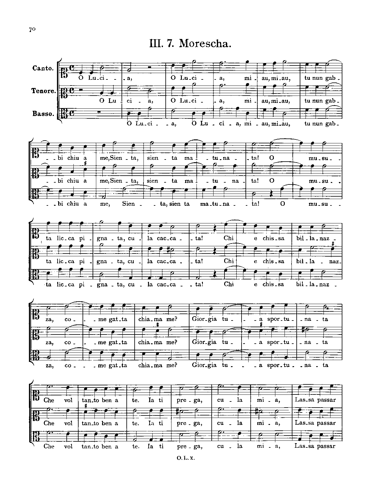 If there is more than one morescha in that collection by Lassus, the page titles will need some sort of identification to distinguish them from each other. Probably the incipit? In this case "O Lucia".