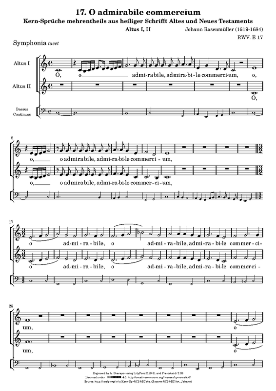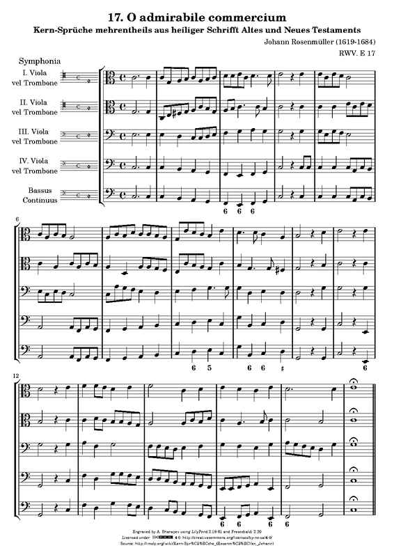| Instrumentation | 2 altos, 4 viols or trombones, continuo |