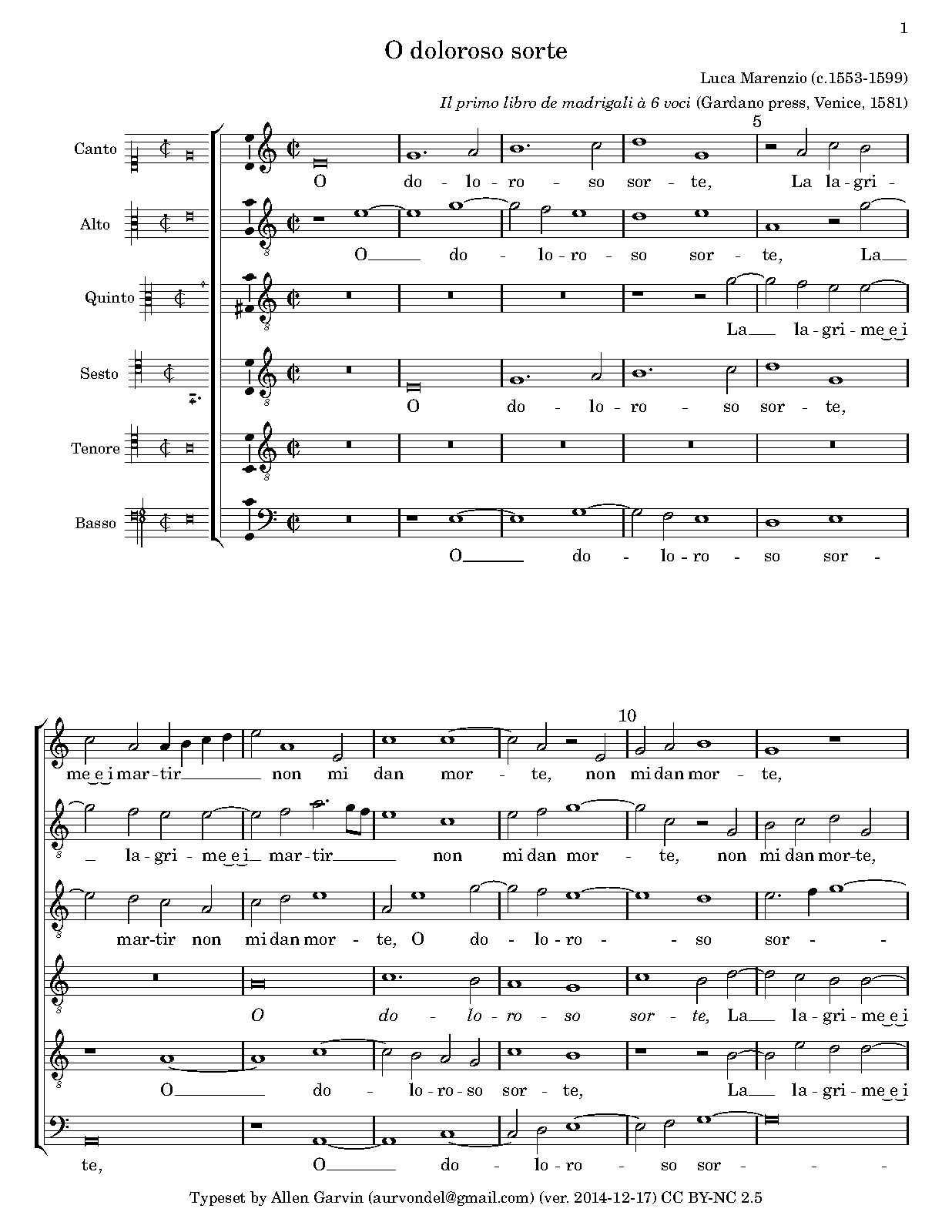 | First Publication | 1581 in Il primo libro de madrigali a 6 voci (No.9) |