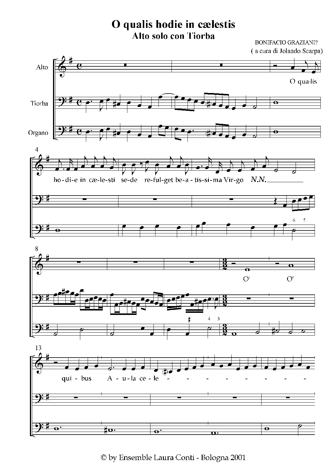 Alternative. Title =O qualis hodie in cælestis; Motet for Alto solo, Theorbe and continuo