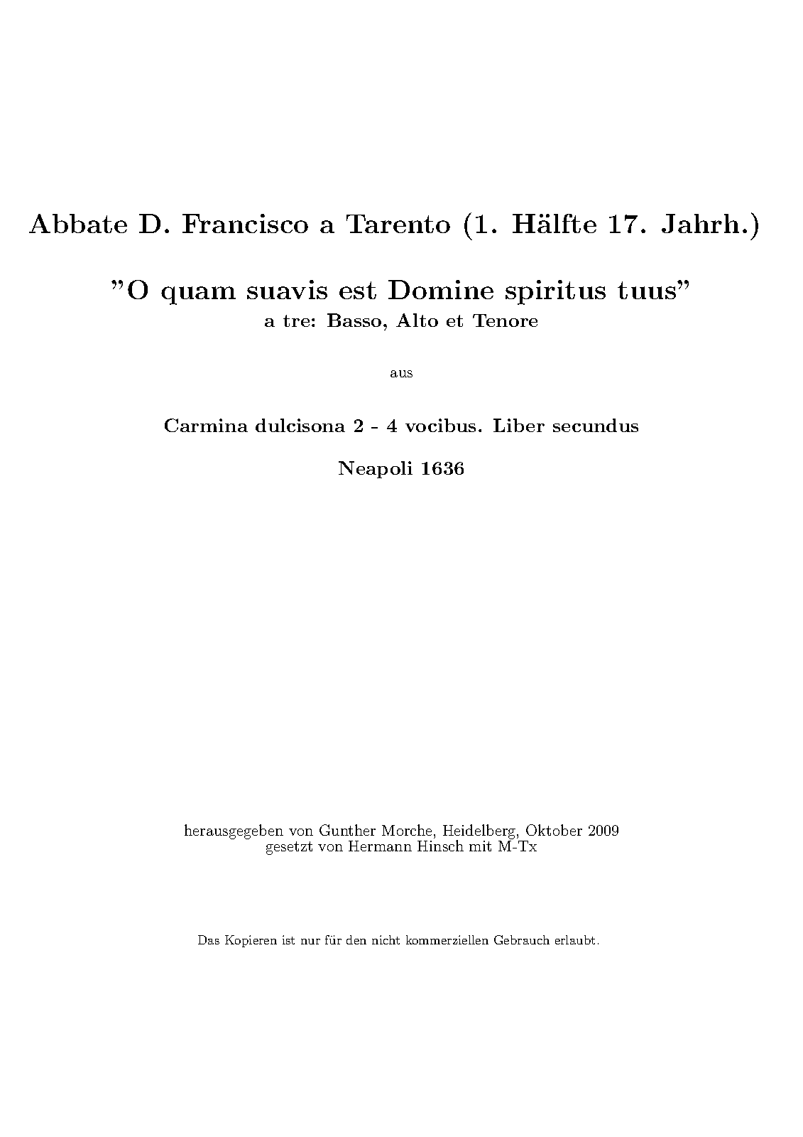 | Work Title | O quam suavis est Domine spiritus tuus |