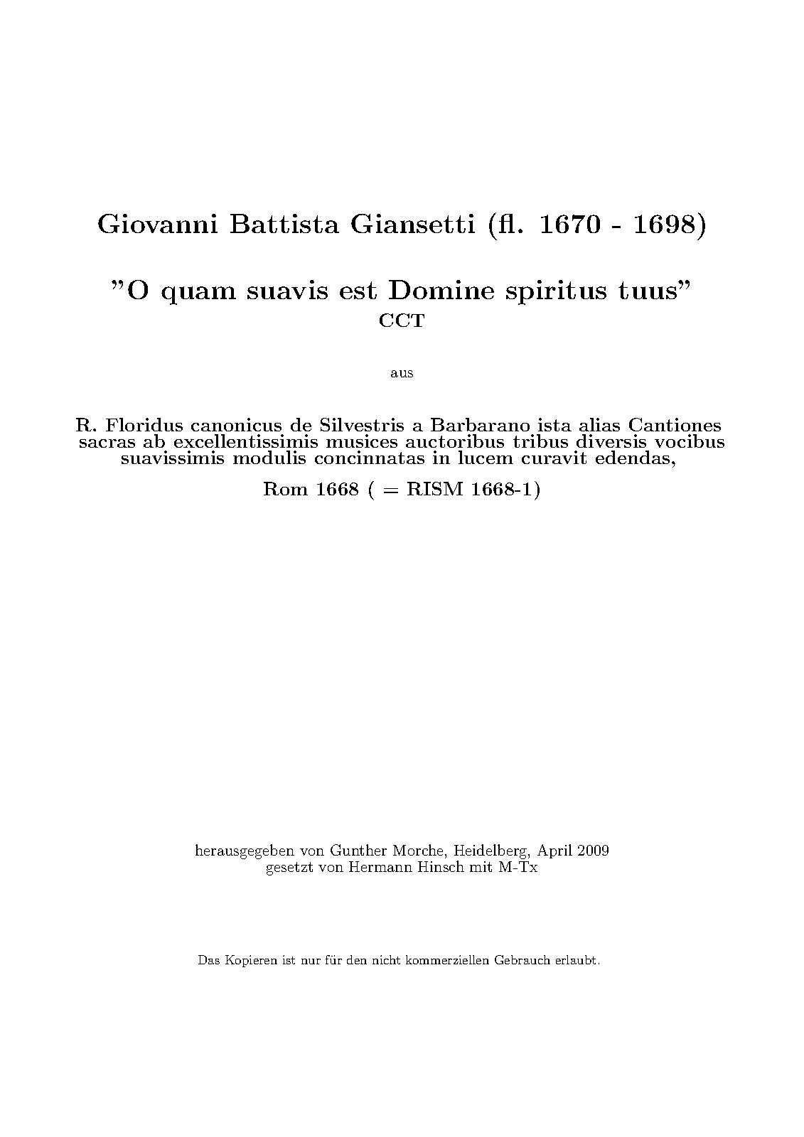 | Work Title | O quam suavis est Domine spiritus tuus |